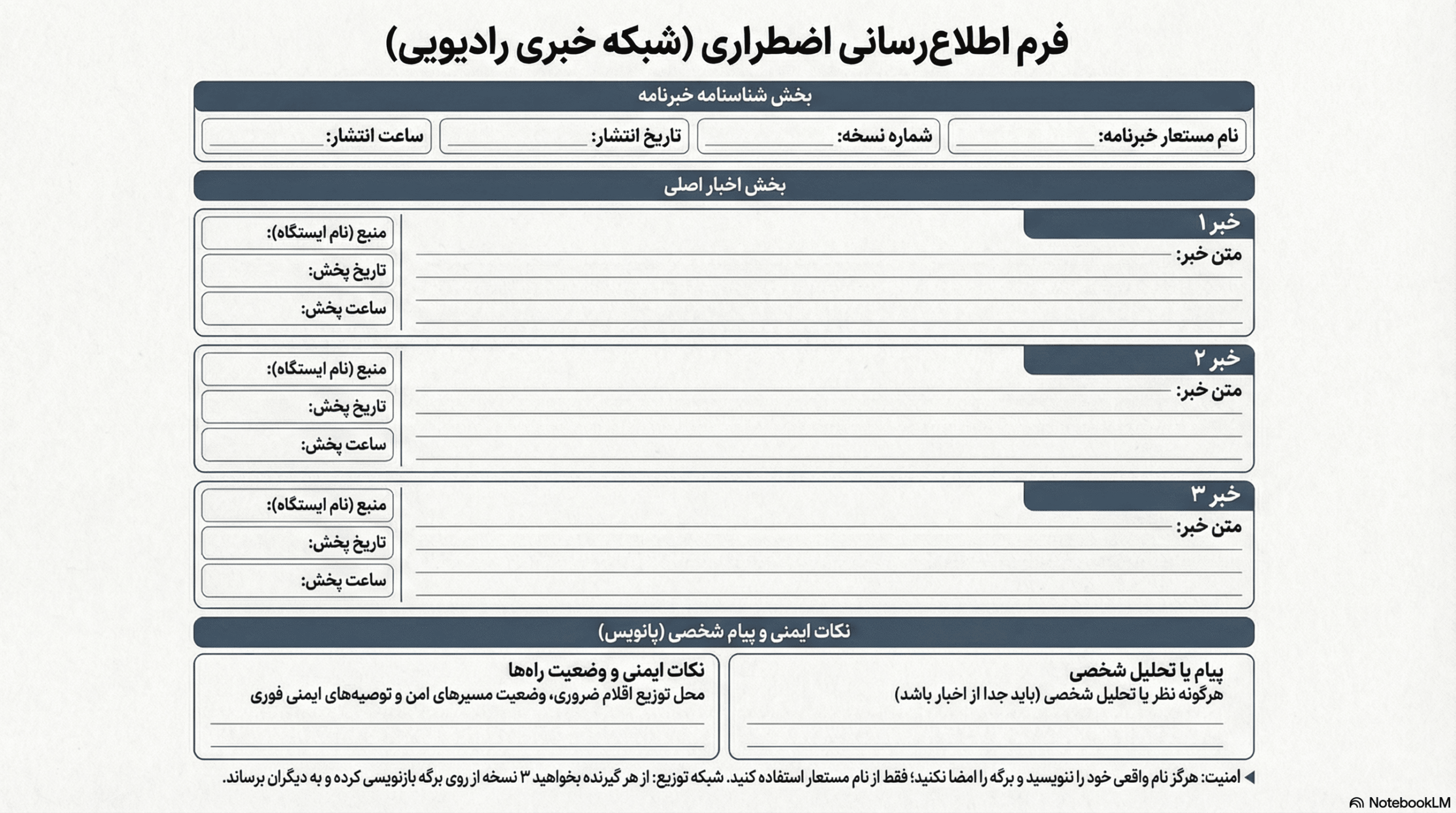 این بروشور به شما کمک می‌کند برای شرایط اضطراری در ایران آماده باشید؛ از زلزله و سیل تا قطعی‌های گسترده و بحران‌های امنیتی. نسخه کامل را اینجا ببینید.